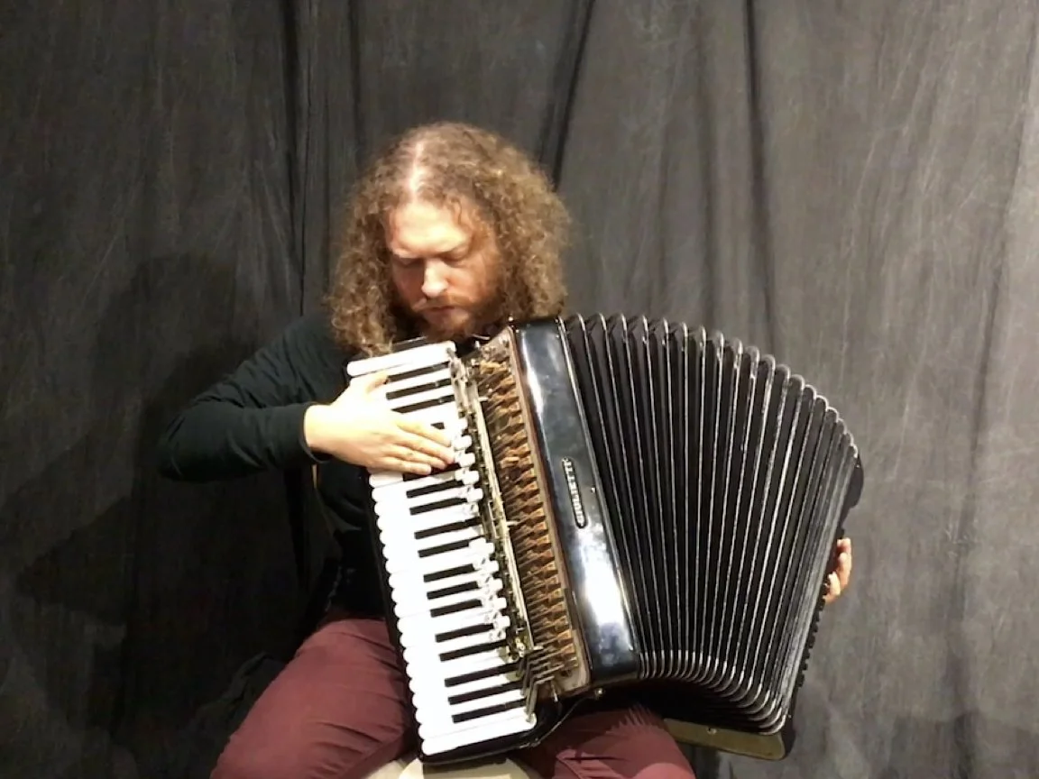 I am a composer, accordionist, ensemble director, and educator, engaging with sound through chamber and orchestral composition, experimental accordion performance, Deep Listening practice, and intermedia collaboration at the intersections of instrumental music, film, sound art, and immersive theater. These distinct yet interwoven practices nourish one another in the cultivation of fragile, constantly transforming sound-worlds that deepen perception of social and ecological interconnection and auralize the relationship between our lives and the manifold periodicities of deep time. Inspired by the fractal recursion of ecosystems and the infinite perspectives of the more-than-human world, my compositions orient toward uncommon orders of magnitude in musical parameters, exploring gradually morphing timbres, acoustic phenomena, and the thresholds where pitch becomes rhythm and harmonic interval becomes beating rate. Traversing these liminal zones, my music aims to offer an aural metaphor for polytemporality, listening toward the vast and infinitesimal timescales beyond everyday experience.